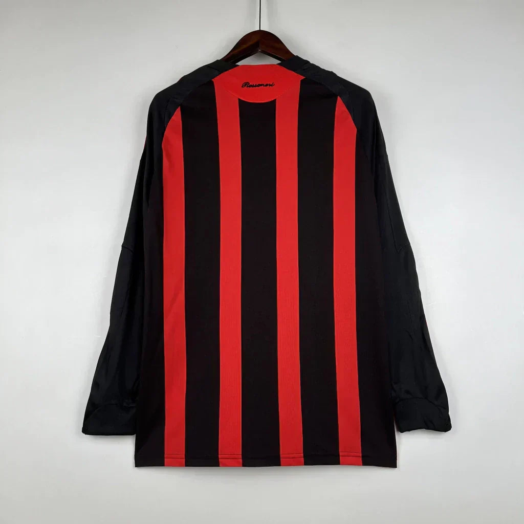 Camisa Retrô Milan I Home Adidas 2008/09 Manga Longa Vermelho e Preto
