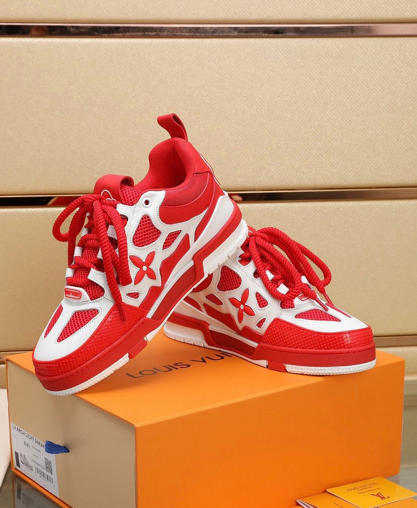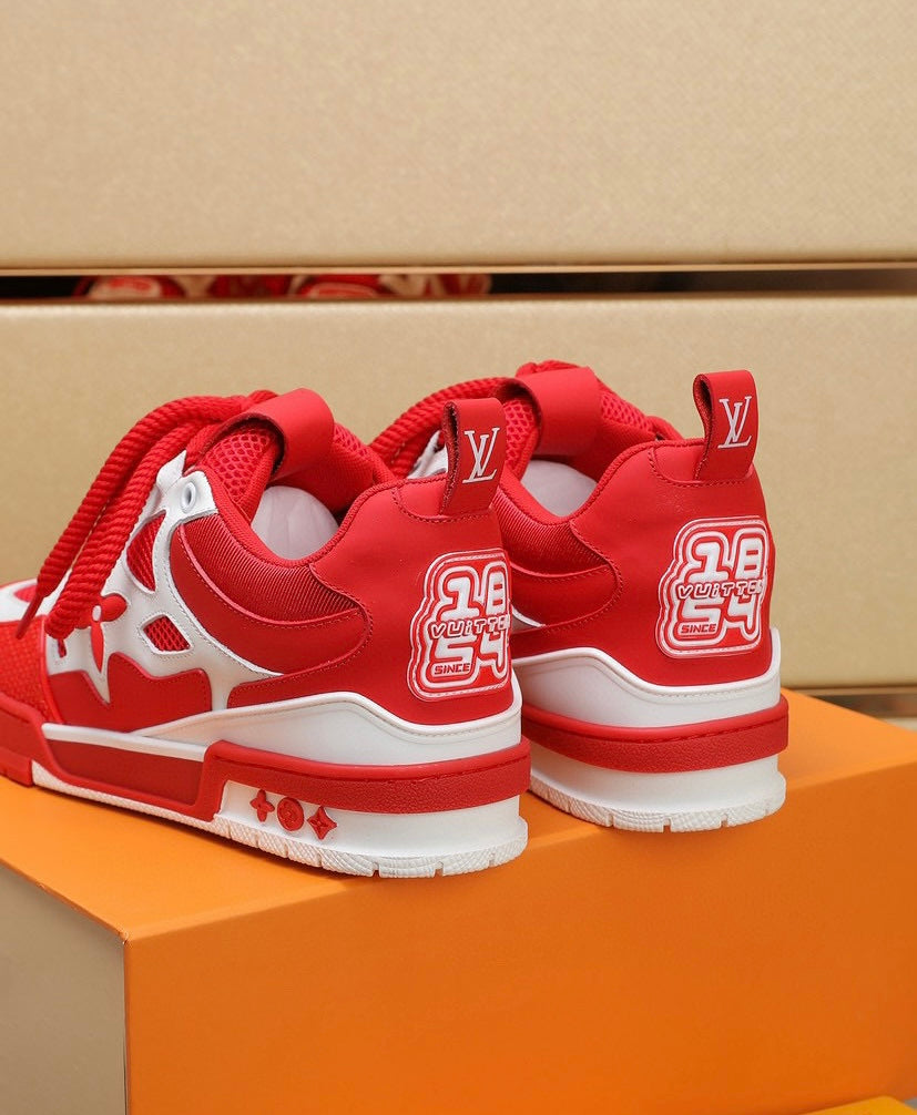 O tênis LV Skate faz referência a um design inspirado nos anos 90, visto pela primeira vez no desfile masculino Fall-Winter 2022 da Louis Vuitton. Seu elaborado cabedal bicolor com detalhes em Monogram Flower combina malha técnica, couro de bezerro e camurça. Este modelo se destaca pelo colarinho acolchoado, cadarços duplos técnicos e solado de borracha bicolor decorado com Monogram Flowers.
